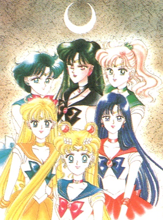 Once there was a place called the Moon Kingdom, where the good Queen Serenity ruled and raised her daughter, Princess Serena. The queen wanted Princess Serena to be a good queen and ruler, just like her. Later on, the evil Queen Beryl got out of her Negaverse and into the universe, and she and Queen Serenity fought. The seven shadow warriors were trapped in the Silver Imperial Crystal and sent to Earth. On the way, it shattered in to the seven rainbow crystals and each went into a separate human. Queen Beryl and her evil people took over the moon kingdom. Right before Queen Serinity died, she sent Princess Serena and the other princesses to Earth with powers to fight the Negaverse if it attacked Earth. Once on Earth, each girl was reborn and set-up with a human family to be with. Those girls are known as Sailor Moon (Serena), Sailor Mars (Raye), Sailor Mercury (Amy), Sailor Jupiter (Lita), and Sailor Venus(Mina). They are the 5 inner-scouts. | ||||||||||||||||